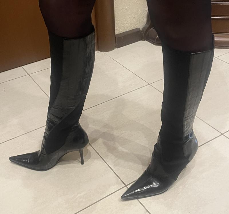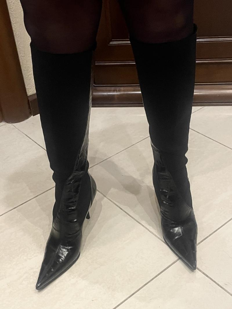 Главная | Сапоги женские Dolce&Gabbana из натуральной лаковой кожи комбинированной с плотной эластичной тканью. Размер 37,5. Сапоги в состоянии новых, одеты...