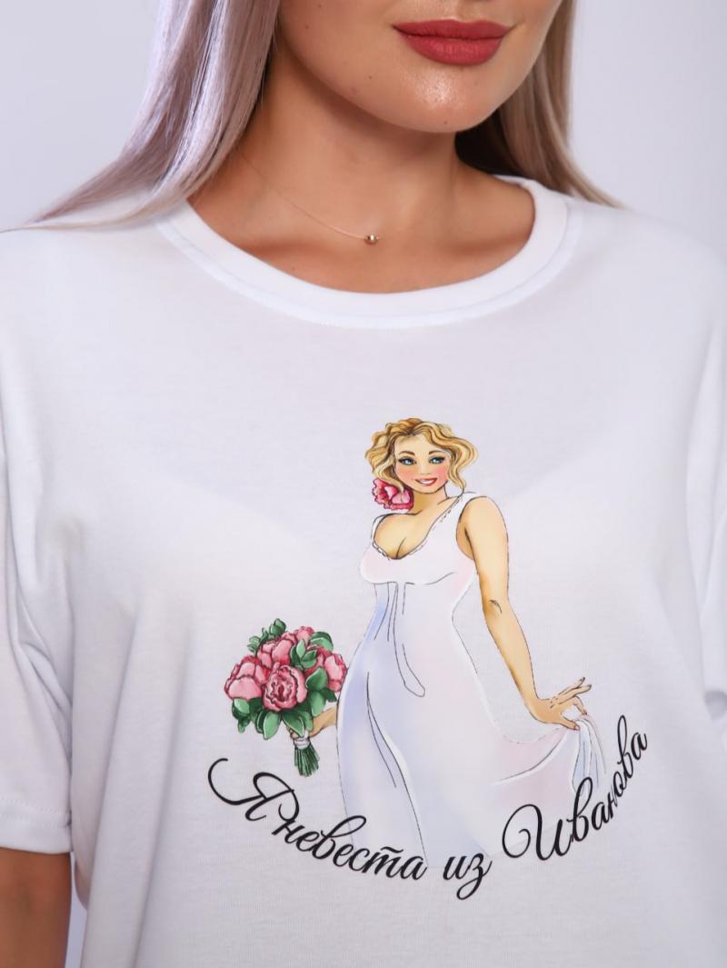 Главная | Экcклюзивная футбoлка бeлая с принтом "Я невестa из Иванoво" - этo прекpacный пoдаpoк, cувeниp для девушек, невесты и её подружeк и не забываем про...