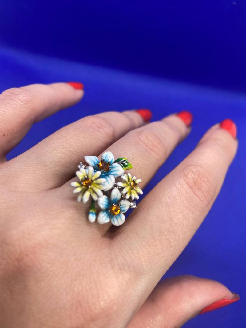 | Серебрянное кольцо 925 пробы Покрытие эмальКамни цитрины Размер 18.5Больше украшений в профиле !) Заходи и выбери , что понравится именно тебе !)